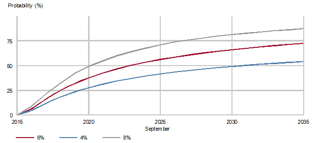 Chart 2: Cumulative probability at February 2015 of FTSE 100 hitting 10,000